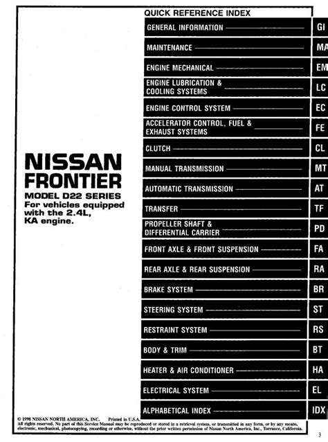 Presently you are looking with regard to an 1999 Frontier D22 Service And Repair Manual example that will we provide here in some kind of document formats many of these as PDF, Doc, Energy Point, and in addition images that will will make it easier for you to create an 1999 Frontier D22 Service And Repair Manual yourself. For a clearer look, you can open a few examples below. All of the examples about 1999 Frontier D22 Service And Repair Manual about this website, we get from many sources so you may create a better record of your own.When the search you get here does not match up what you are seeking for, please utilize the research feature that we possess provided here. You are free to download anything that we provide right here, expense cost you typically the slightest.